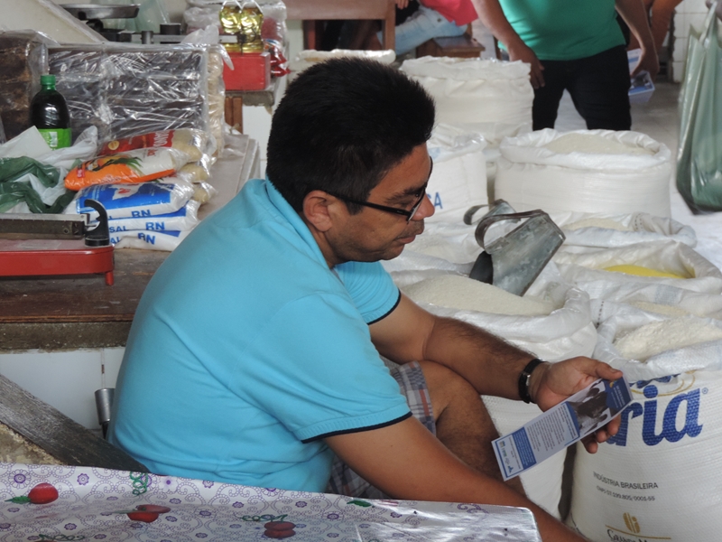 Campanha leva para a feira livre e outros pontos comerciais, informações e combate ao problema, com panfletos contendo mensagens preventivas.